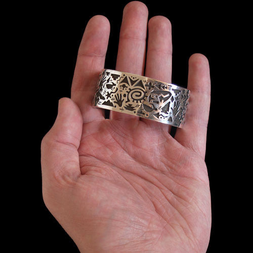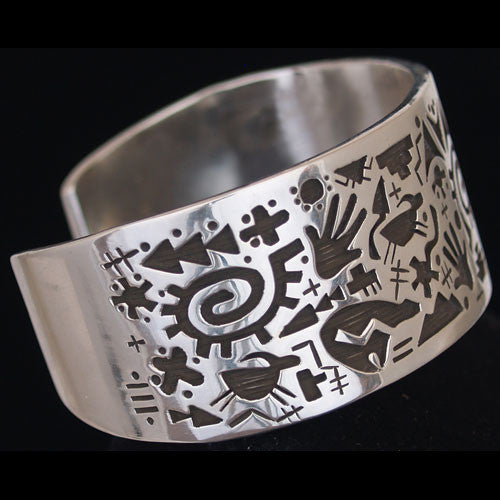 Hopi Sterling Silver Petroglyphs Bracelet - Kee Yazzie Jr. (#60)