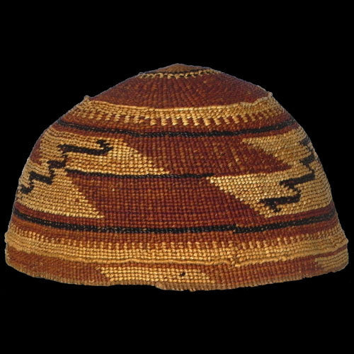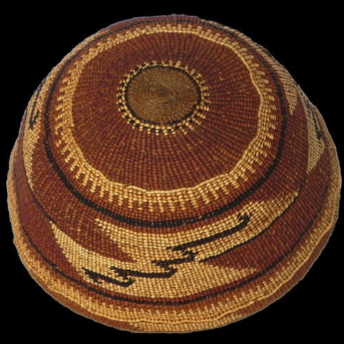 Late 1900's Karok Basketry Hat w/ Obsidian Blade Design (#03)