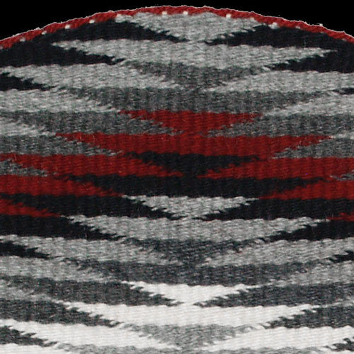 A round eyedazzler? Now that is rare indeed! Navajo weaver Rolanda Begay is one of the few rug makers to attempt this unusual format, and one of the few to get it right. This rug is a true rounder: full, complete and final.