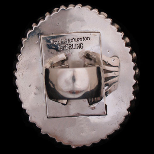 Monumental is the only way to describe this coral ring by Navajo silversmith Paul Livingston. Many people may not have the courage to make a ring of this scale, but Paul does not shrink from such challenges. If you have the heart to wear it, you will surely turn heads.