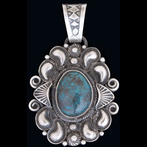 Eugene is one of those rare artists who has mastered not just one or two methods, but a myriad of jewelry techniques. As a young man, he trained under other talented silversmiths After many decades of steady work, Eugene is skilled at metal fabrication, casting, making his own silver ingots, and most importantly for his work, the ability to cut stones. In his work below, you will see beautiful cut teardrop and pyramid cut Sleeping Beauty turquoise and coral. His two newest pieces with Carico Lake turquoise demonstrate his mastery of silver stamp work.