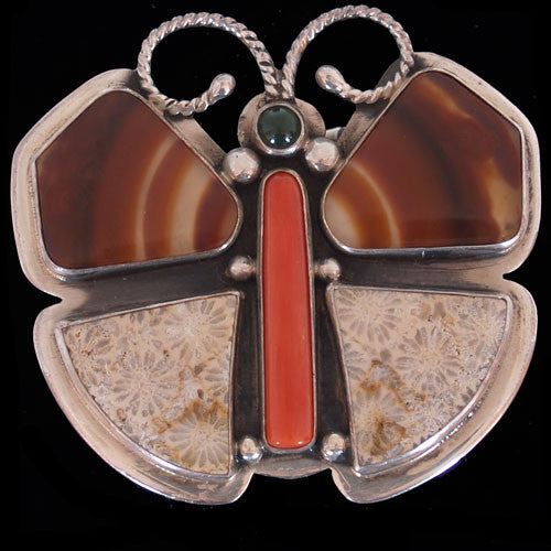 Navajo 21 Coral Stone Brooch/Pendant - Geneva Ramone (#36)