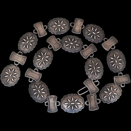 Navajo 1960's Sterling Silver Antiqued Chain Link Concho Belt (#50)