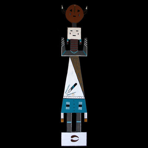 Inspired by his father, Charlie Willeto, when he came of age Navajo folk artist Harold Willeto began carving spiritual beings representing power images. This Yei is a benevolent and spiritual healer. In order to bolster the power, Harold has incorporated the footprint of a deer, prayer feathers and the face of the Sun. Harold's art is meant to portray the strength and ongoing dependability of Navajo ceremonialism and culture.