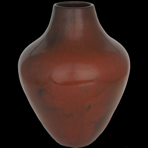 In the world of Native American art, Edna Romero is related to the best potters in the business. There is so much talent surrounding her that she had no choice but to become a potter. And become a potter she did—a most masterful potter. Edna now lives in Taos but her roots are in the New Mexico pueblo of Santa Clara. The classic beauty of this micaceous pottery vessel is due to its amazing symmetry and fine finish. This vessel is of the quality that makes her royal family proud.