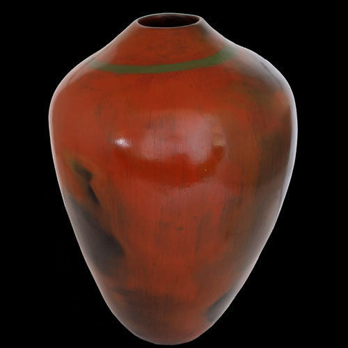 Navajo artist Alice Cling was born in a hogan near Cow Springs, Arizona, 60 years ago. This hand coiled and burnished vessel is also embellished with a thin coat of Pinion pitch. Its enduring beauty comes from Alice's unusual use of colored clay slips and from the striking variations of natural colors caused by outdoor firing. Very few Navajo potters approach the high quality of creativity Alice Cling achieves with her art.