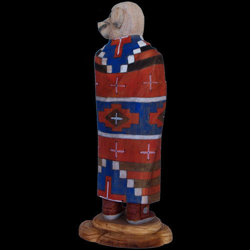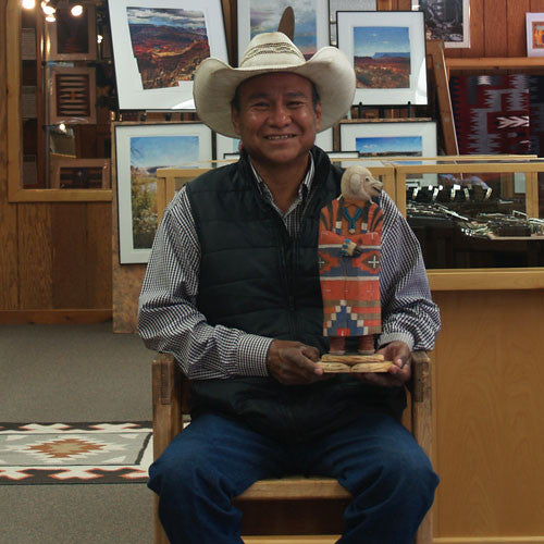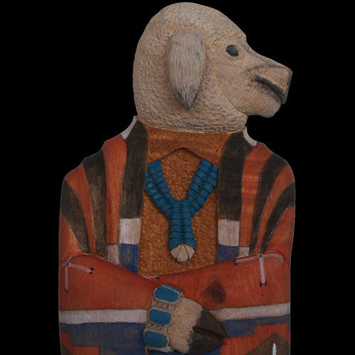 Based upon the Navajo creation tales, the sculptures of Marvin Jim reflect a time long ago, when animals and humans walked and worked together to create a new world. These traditional stories speak of conversations among all beings, of behaving in a manner of mutual respect and of all beings having an equal position in the community. These legends are an essential part of the Navajo culture. The tales are of universal interaction, compassion and tolerance; the things necessary to live a balanced existence.