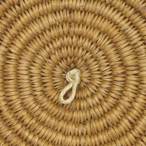 The Navajo wedding basket also reflects many values of traditional life and so often contains all six sacred mountains, including Huerfano and Gobernador Knob, though the size of the basket may determine the numher of mountains in the design. The center spot in the basket represents the beginning of this world, where the Navajo people emerged from a reed? More about this legend