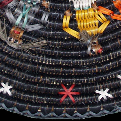 Inspired by dreams, Lorraine Black's skills have literally elevated basket weaving to new dimensions. Lorraine Black's infectious laugh belies the serious magic her hands conjure up when weaving a basket. Unprecedented in her ideas, Lorraine's baskets are innovative and beautiful. Many of them make good use of texture through over-stitching and the addition of objects such as flint arrowheads or horsehair.