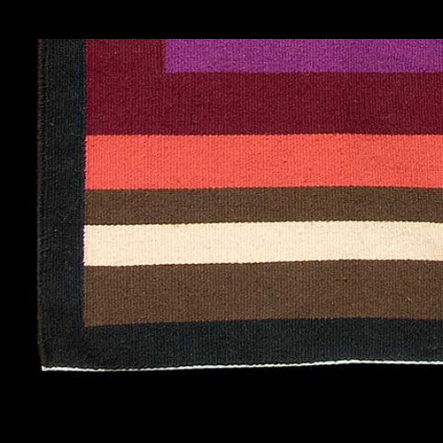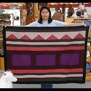 Eleanor was born in 1963 at Keams Canyon, Arizona to Joe and Ella Benally. She has two sisters and five brothers. When visiting her grandmother on her mother's side who lived at Smoke Signal, she would watch her weave. Her grandmother, Bah Begay, especially loved weaving storm pattern rugs. Eleanor helped her grandmother who, at that time, made handspun rugs. Eleanor learned every step from shearing the sheep to washing and dyeing the wool to spinning the yarn. Because her grandmother especially loved the storm pattern weavings, this style was the first type woven by Eleanor. Her mastery of complex geometrics and diagonal lines comes from this experience in weaving the storm pattern.
