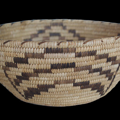 When this basket was first woven, sometime in the late 1960s or early 70s, the weaver would have been recognized as Papago. The Papago people are, however, now known as the Tohono O'odham. They are a Native American group primarily residing in the Sonoran Desert of southeastern Arizona and northwestern Mexico. Today there is a Tohono O'odham Nation located in southern Arizona. It is unfortunate the weaver has gone undocumented. Whoever he/she was, however, the weaving abilities demonstrated with this basket are highly refined.