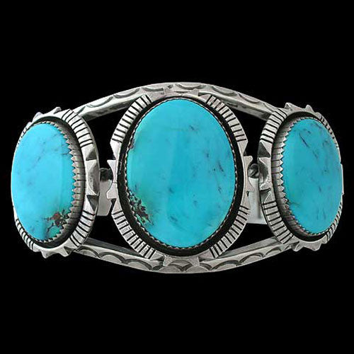 Navajo 3 Stone Blue Diamond Turquoise Bracelet - Toby Henderson (#048)