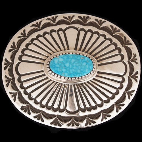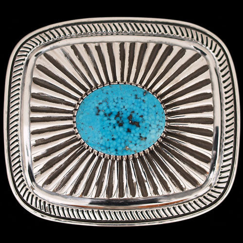 Navajo Sterling Silver & Sleeping Beauty Turquoise Buckle - Calvin Martinez (#01)