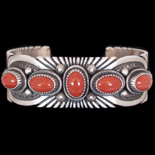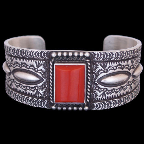 Navajo Handmade Sterling Silver Mediteranean Coral Bracelet - Herman Smith (#02)