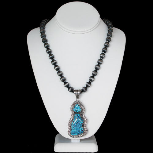 Trent Lee is taking the art of making "Navajo pearls" to an entirely new level. Not only does he create unique shapes, his finish detail is over the top. Trent learned the art from his father, Allison Snowhawk Lee, and they still work together in the same shop. Handmade beads are difficult to create, since there are numerous steps involved in each individual pearl and not many artists have the patience and attention to detail to work through the process. Luckily Trent does.