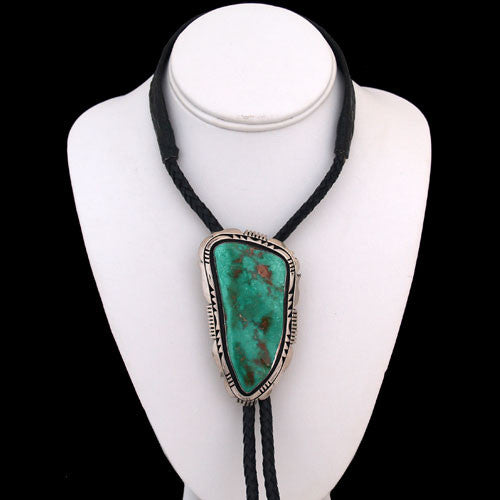 Navajo High Grade Morenci Turquoise Bolo Tie - Allison Lee (#196)