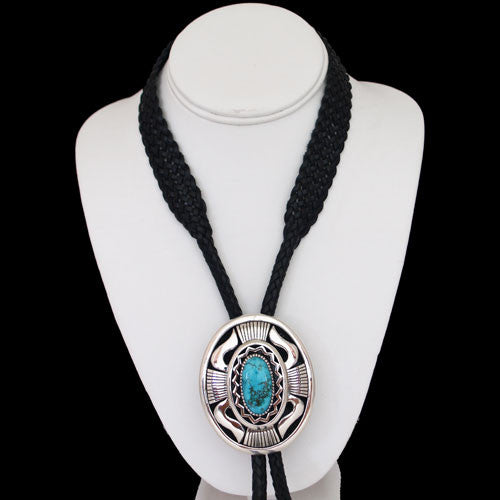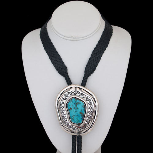 Navajo Pilot Mountain Turquoise 22.15 ct Bolo Tie - Allison Lee (#177)