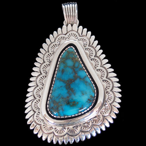 Kingman Turquoise and Sterling Silver Pendant by Will Denetdale (#280)