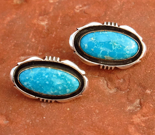 Searchlight Turquoise and Sterling Silver Post Earrings - Will Denetdale (#279)