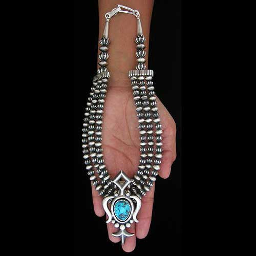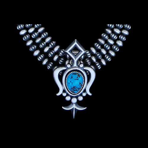 Speaking of the silver and gold jewelry he hand crafts, Allison Lee's captivating voice is sincere when he says, "One time my uncle told me that everything we build comes from the earth, like the silver that comes from the earth, or the turquoise that comes from the earth. That is a lot of energy. You put it together and you put your heart and mind into a piece. Then sometimes a certain piece of jewelry- I believe- it is made for a certain person. I usually have a ring, or something, that stays with me for about two or three years, until the right person comes along. And then that person buys that piece. I believe that every piece of jewelry that I make is made for somebody out there- it's made for somebody special. Whoever might be having problems, or something like that. In essence, that energy helps that person get help, by wearing pieces that we make. That is the way I look at it.