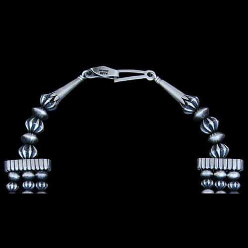 Navajo Kingman Turquoise and Sterling Silver Triple Bead Strand Necklace - Allison Lee (#124)