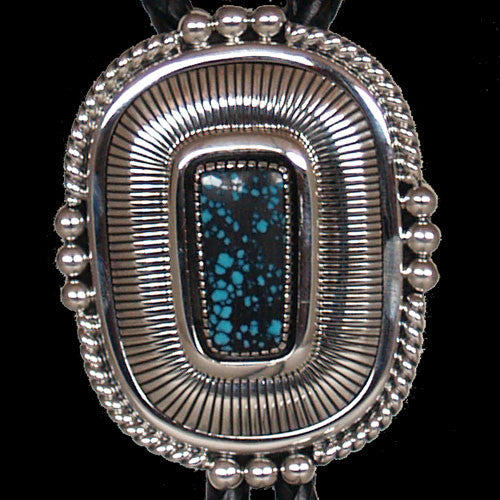 Man, if you want a bolo tie to replace your current silk ones, this is it! With a spectacular, and I mean spectacular, piece of Lone Mountain turquoise set in an Allison Lee mounting, you will receive raves when you wear it.