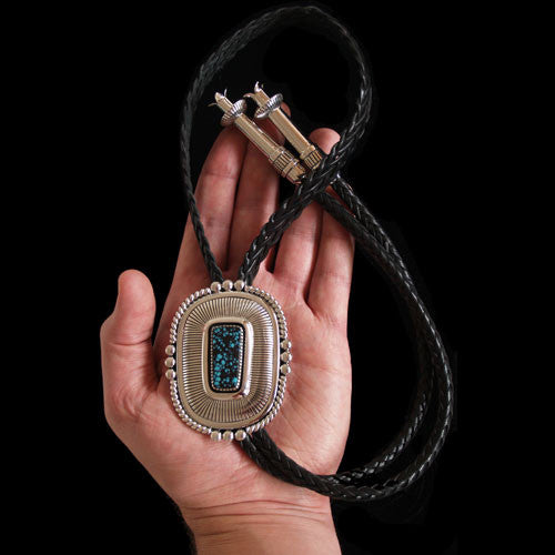 Navajo Lone Mountain Turquoise Sterling Silver Bolo Tie - Allison Lee (#175)