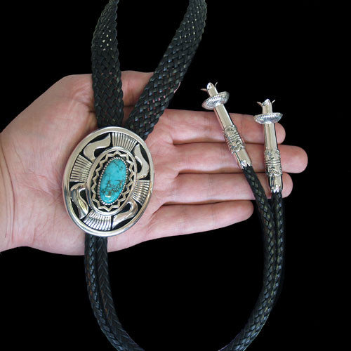 Navajo Natural High Gem Grade Blue Gem Turquoise Bolo Tie - Allison Lee (#191)