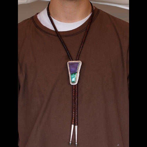 Navajo Persian Turquoise and Sugilite Bolo Tie - Albert Jake (#023)