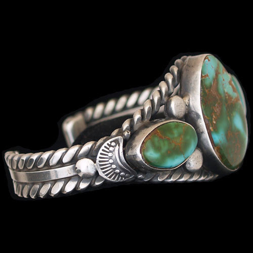 When it comes to Royston turquoise character is the name of the game, and this cuff, featuring a suite of three smashing character stones, shines like a beacon. Navajo silversmith Victor Begay knew not to get too complex with the metalwork and left the stones to stand on their own. Surely the crowds will hover when they see you wearing this.