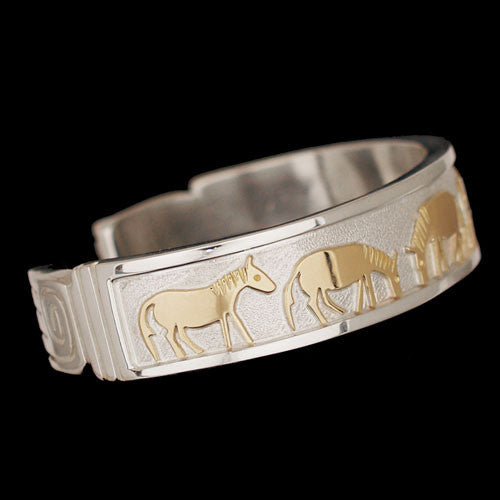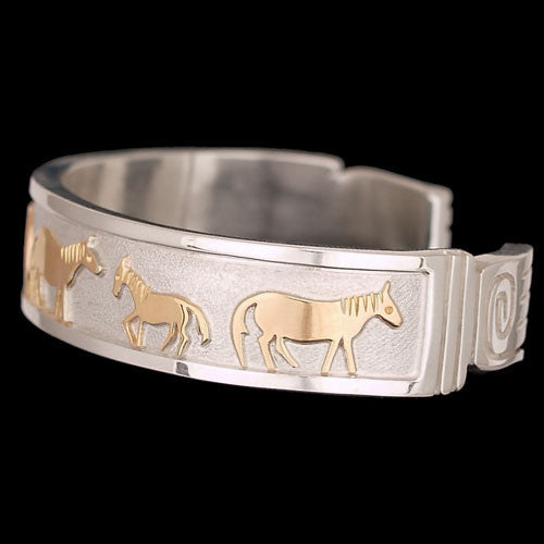 Navajo Sterling Silver w/ 14k Gold Horses Bracelet - Sean Taylor (#01)