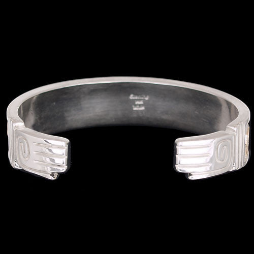 Sean Taylor, the son of Robert Taylor, is extremely fond of horses. So, taking his father’s silversmith style and blending it with a herd of abstract equines, Sean has forged a “wildly” interesting cuff. Sterling silver and 14k gold combine in a pleasing combination. Finish off the design with friendship hands and a spiral for eternity, and you have a terrific bracelet.