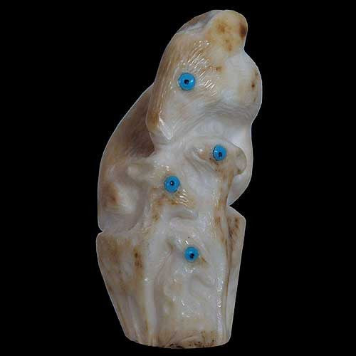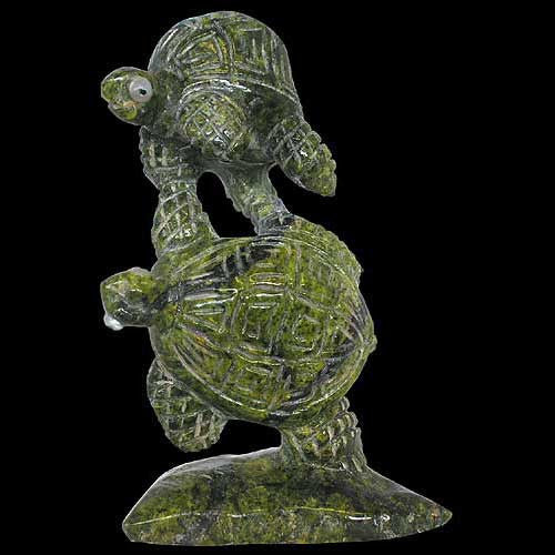 Turtles are water symbols to the Native people of the Colorado Plateau. In this carving, master artist Ricky Laahty has put his skills to work and created a stack of water creatures. Always on the lookout for special stones, Ricky has used a deep green serpentine to craft this marine marvel. Yertle the Turtle King has nothing on this seafaring duo.