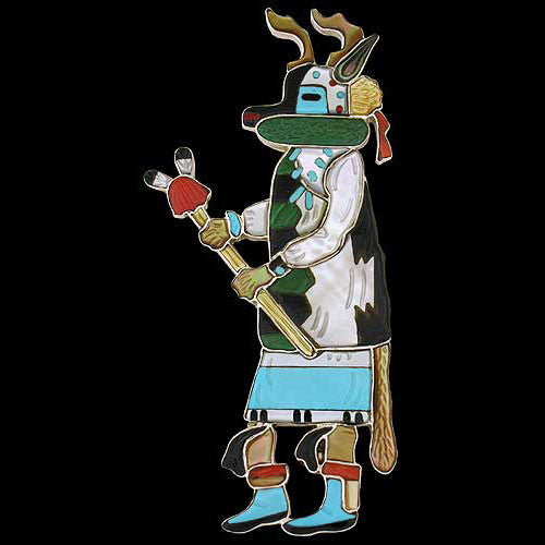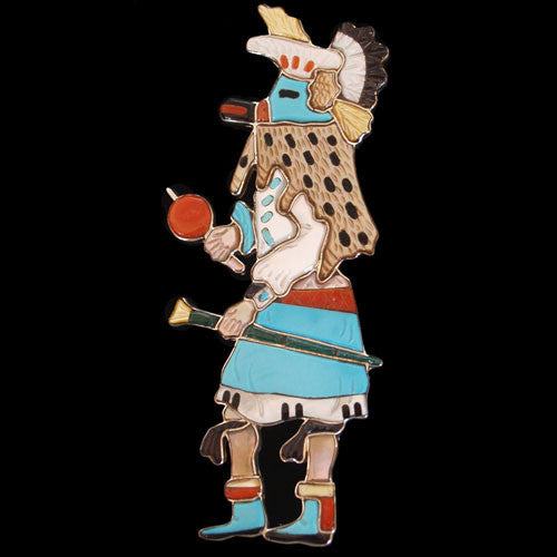 Zuni Sterling Silver Multi-colored Sky Gemstone Kachina Dancer Pin/Pendant - Andrea Lonjose Shirley (#01)