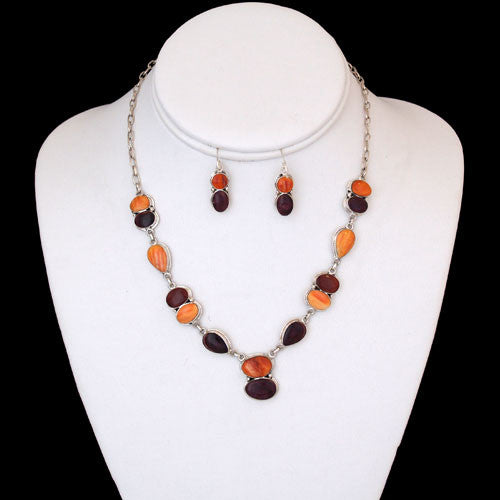 Zuni Spiny Oyster Shell Earrings and Necklace Set - Jillian Etsaty (#42)